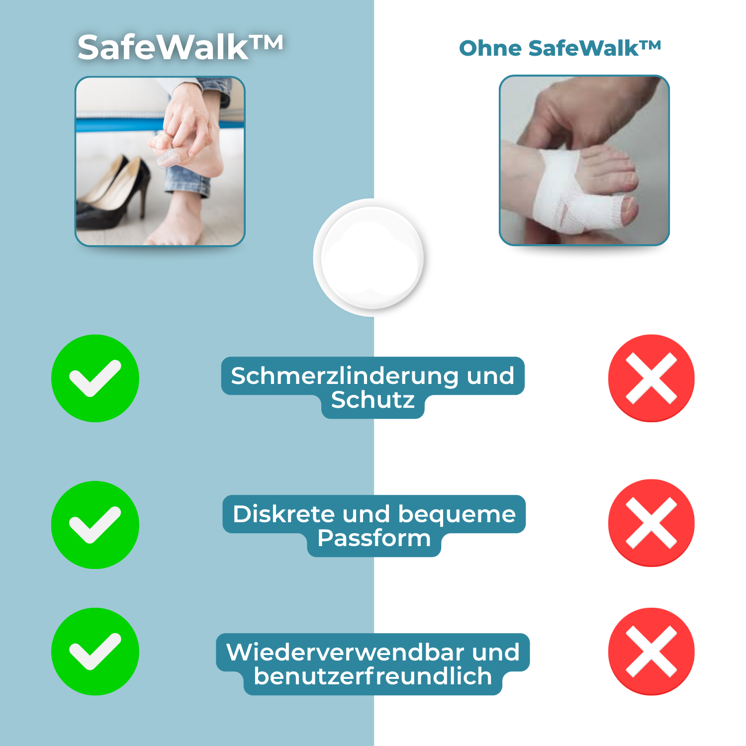 Do your toes often hurt when walking or exercising? Corns, friction, or pressure points making every step agony? With SafeWalk, every step becomes light and comfortable again. Ideal for blisters, calluses, or sensitive little toes.