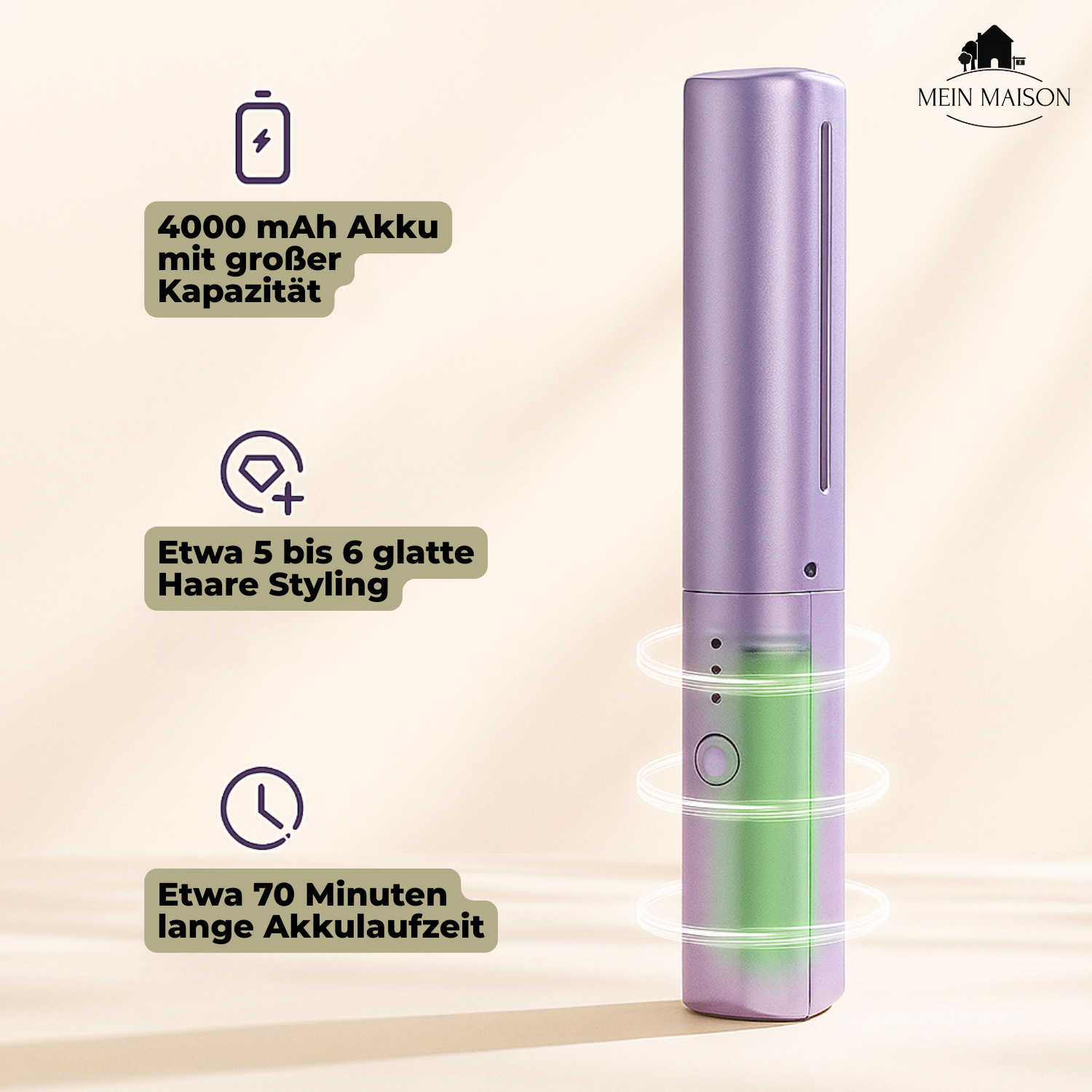 Do you have little time in the morning or no access to a power outlet while on the go? SmoothStyle gives you the freedom to straighten your hair anywhere – completely cordless. No more bad hair days while traveling.